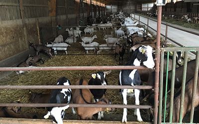 Après un accueil chaleureux par Sylvain, le maître des lieux, nous visitons toute l’exploitation qui comprend 220 chèvres de races Alpine et Saanen, critères obligatoires pour obtenir l’appellation d’origine contrôlée.